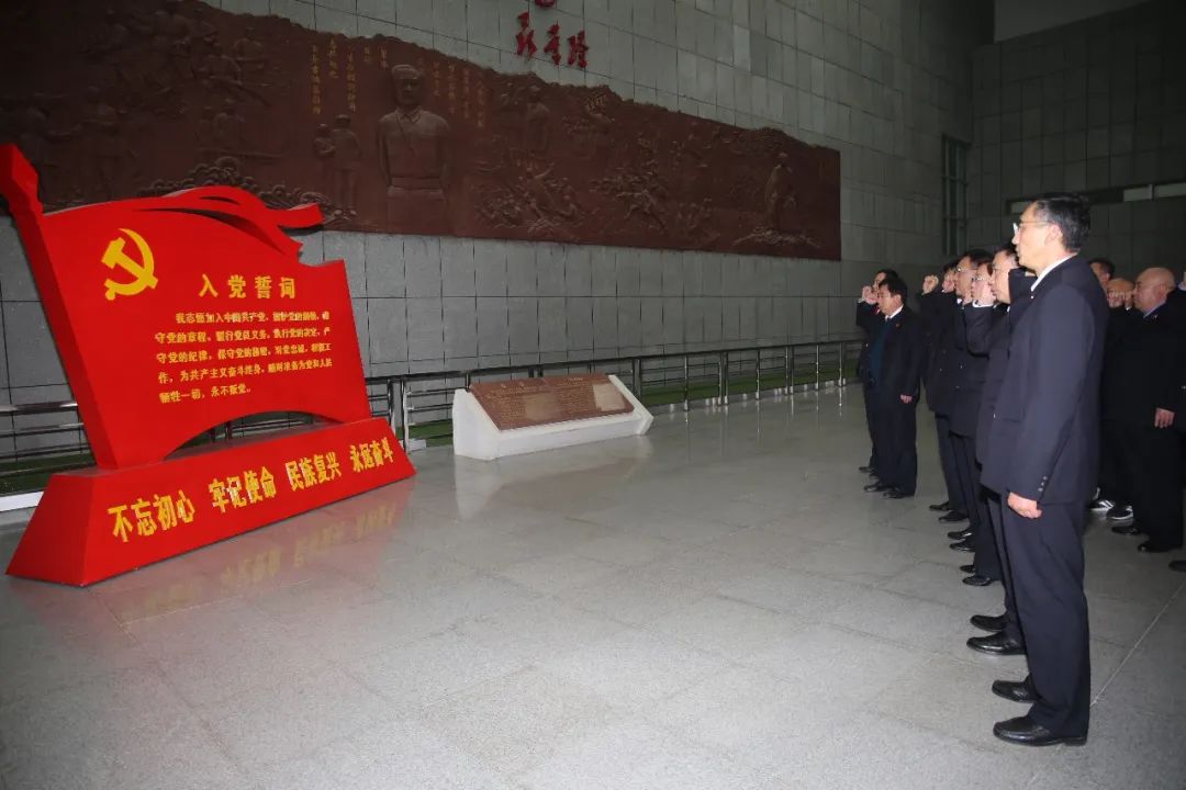 在吉鴻昌將軍的塑像前,院黨組成員呂振華領(lǐng)讀入黨誓詞:“我志愿加入中國共產(chǎn)黨,擁護(hù)黨的綱領(lǐng),遵守黨的章程……”縣院全體干警面向黨旗莊嚴(yán)宣誓,鏗鏘有力的宣誓聲在吉鴻昌將軍紀(jì)念館內(nèi)回蕩。
