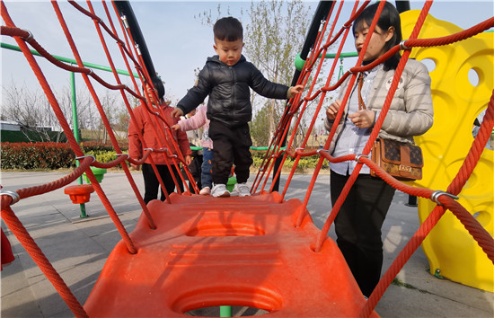 在周口公園內(nèi),園內(nèi)春意盎然,一株株垂柳隨風(fēng)搖擺,各種花開(kāi)正盛,市民循著春天的腳步,品味草長(zhǎng)鶯飛的春色美景。游樂(lè)設(shè)施區(qū)內(nèi)孩子們盡情地玩耍,臉上洋溢著開(kāi)心地笑容。