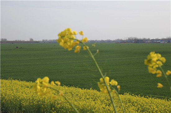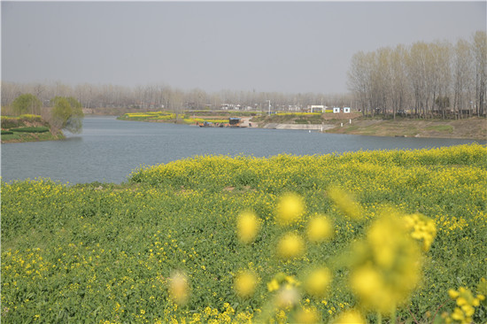 沙潁河一帶碧水從油菜花盛開(kāi)的商水大地靜靜流過(guò)。