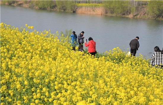 花香蝶自來(lái)。每到周末,許多游客就會(huì)來(lái)到這里,徜徉在美麗的花海中,呼吸著新鮮的空氣,遠(yuǎn)眺緩緩東去的碧水,共賞一場(chǎng)美麗的花事,盡享幸福生活。許多俊男靚女用他們善于發(fā)現(xiàn)美的慧眼,紛紛進(jìn)行自拍,將這份極致的美景定格在自己的相機(jī)鏡頭里。