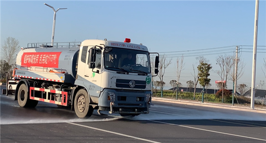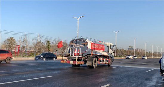 3月22日上午,記者在商水縣溵川大道東段拍到一段灑水車作業(yè)的畫面,畫面里灑水車勻速行駛著,當灑水車走近,聽到灑水車上傳出《歌唱祖國》的曲子。當灑水車路過溵川大道與八一大道交叉口處時,記者看到等紅燈的市民跟著《歌唱祖國》的曲子唱了起來:“五星紅旗迎風飄揚,勝利歌聲多么嘹亮……”