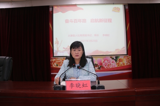 當日上午,縣人社局黨組書記、局長李曉虹以《奮斗百年路 啟航新征程》為課題,為人社系統(tǒng)干部職工上了一堂生動精彩的黨課。李曉虹局長在講課中要求,全局上下一要提高思想認識,增強黨史學(xué)習(xí)教育政治自覺、行動自覺;二要提高政治站位,充分認識開展黨史學(xué)習(xí)教育的重要意義,推動黨史學(xué)習(xí)教育入腦入心、走深走實,高質(zhì)量開展好黨史學(xué)習(xí)教育;三要把開展黨史學(xué)習(xí)教育作為當前首要政治任務(wù),倍加珍惜黨的歷史、認真學(xué)習(xí)黨的歷史、全面宣傳黨的歷史,以百年黨史鼓舞斗志、明確方向,堅定信念、凝聚力量。要準確把握“學(xué)史明理、學(xué)史增信、學(xué)史崇德、學(xué)史力行”的目標要求,緊密聯(lián)系實際,認真學(xué)習(xí)研究,科學(xué)謀劃推進。從黨的光輝歷史中汲取闊步新征程的磅礴力量,堅守初心、勇?lián)姑?,攻堅克難、砥礪奮進,在推進全縣人社事業(yè)健康快速發(fā)展的新征程上開好局、起好步。