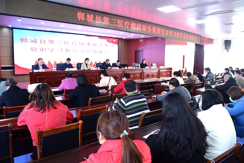 3月24日下午,中共鄲城縣第三醫(yī)療健康服務(wù)集團黨委在總醫(yī)院鄲城縣中心醫(yī)院大會議室召開黨史學習教育動員部署大會??h衛(wèi)健委黨組成員、副主任徐濤,第三醫(yī)健集團黨委書記梁麗,第三醫(yī)健集團黨委副書記、總醫(yī)院院長劉輝,總醫(yī)院副院長馬金來、黎娟出席,黨辦主任韓學貞主持會議。