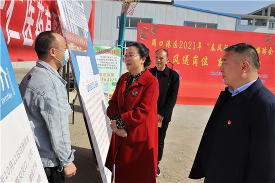 3月24日,周口港區(qū)舉辦以“春風(fēng)送崗位、就業(yè)暖民心”為主題的2021年“春風(fēng)行動”啟動儀式暨港區(qū)春季用工招聘會。港區(qū)黨委委員張東立,港區(qū)黨委委員、紀委書記李素芹,周口市人才交流中心主任李志參加啟動儀式。
