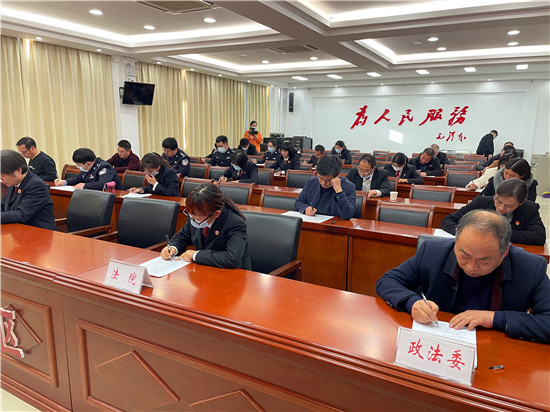 3月25日,川匯區(qū)舉行政法隊伍教育整頓知識競賽活動。競賽采取“雙隨機”的形式,在區(qū)委政法委機關(guān)、區(qū)法院、區(qū)檢察院、區(qū)公安分局、區(qū)司法局隨機各挑選6名人員進行組隊,隨機抽取考題開展競賽。測試考卷共計36道試題,考試時間為40分鐘。區(qū)委常委、政法委書記李祥生主持競賽測試。測試采取閉卷的方式,并進行全程錄像??荚嚱Y(jié)束后,區(qū)紀委監(jiān)委、區(qū)委組織部相關(guān)負責人現(xiàn)場改卷,現(xiàn)場公布成績,現(xiàn)場通報頒獎。