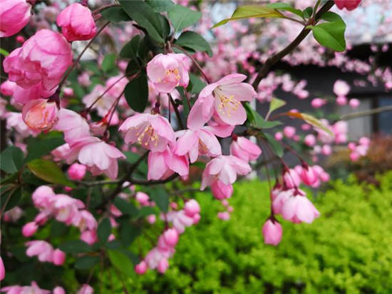 “等閑識(shí)得東風(fēng)面,萬紫千紅總是春?!苯?,三川大地百花盛開,海棠花、桃花、紫荊花、連翹花……盛開的花朵色彩繽紛、美不勝收,濃濃的春意掛滿枝頭,令人流連忘返。