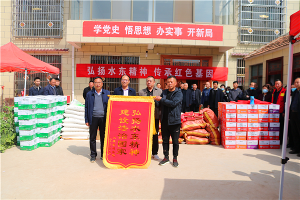 捐款捐物,助力舊址復(fù)原建設(shè)。參觀學(xué)習(xí)活動(dòng)結(jié)束后,路凱杰組織司法行政干警為聚臺(tái)崗紅色水東文旅紀(jì)念工程項(xiàng)目捐款,助力弘揚(yáng)水東精神,傳承紅色基因,并代表全縣司法行政系統(tǒng)隊(duì)伍為水東革命舊址復(fù)原建設(shè)一線工人捐贈(zèng)大米50袋、面粉20袋、食用油40桶、礦泉水50件、方便面50箱、豬肉80余斤。高賢鄉(xiāng)黨委書(shū)記鄭宏對(duì)他們的到來(lái)表示歡迎,對(duì)司法局的捐贈(zèng)表示感謝,并向大家介紹了工程各項(xiàng)目進(jìn)展情況。