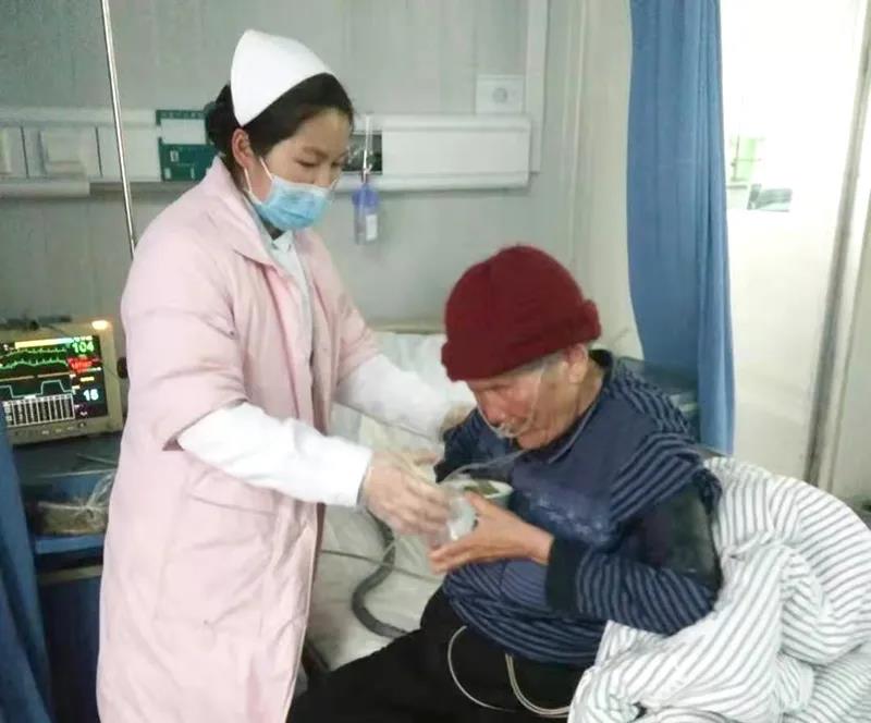 科室副主任趙凱華進(jìn)病房查看完患者,像女兒一樣來(lái)在老人床邊,喂她吃飯,安撫情緒,給予心理疏導(dǎo)。大娘邊吃邊高興得熱淚盈眶,不住聲地道謝:“久病思親人,我生病來(lái)到這兒住院,真是三生有幸。你們給了我家的溫暖,讓我享受到了子女的愛(ài)戴,真比親閨女還強(qiáng)。”③2