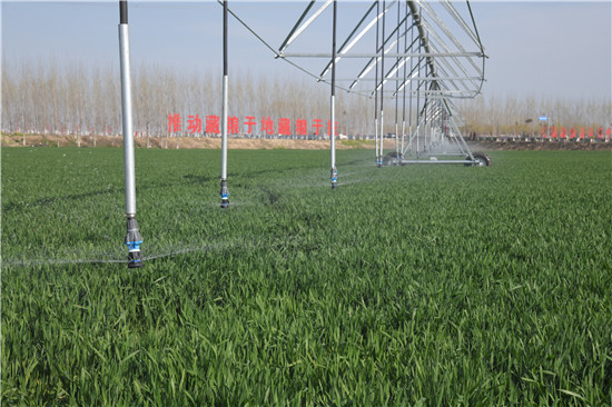 十四五規(guī)劃和中央一號文件對鄉(xiāng)村振興工作的重視給商水縣各種植專業(yè)合作社以極大信心,他們紛紛加大投入,發(fā)展智慧農業(yè)、高效農業(yè)、綠色農業(yè),把藏糧于地、藏糧于技落到實處。天華合作社購進的這6臺設備,機器的一端固定,其他跨體在電機帶動的輪胎上沿順時針或逆時針軌跡行走,用手機即可操作,能用更少的人工、資金和水來提高灌溉效果。