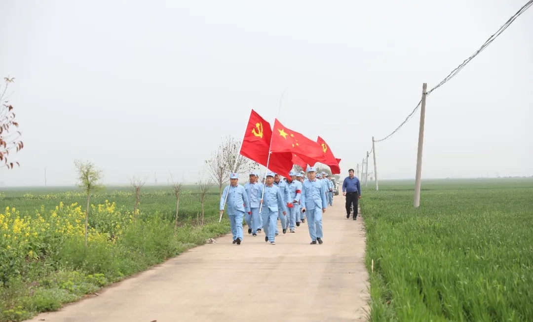 “我一定要跟著大部隊(duì)走,絕不掉隊(duì),不給紅軍前輩抹黑。”剛剛做完手術(shù)的七一村黨支部書記何治安斬釘截鐵地說。在七二村,熱情好客的七里倉群眾不僅給“大軍”送來了西紅柿、黃瓜、茶雞蛋、香蕉等補(bǔ)給品,還表演了“祖國你好”、“美麗生活”等扇子舞,再現(xiàn)了當(dāng)年紅軍到哪都受人民群眾擁戴的情景,同志們的疲憊一下子煙消霧散.....按照拓展行程安排,在盆李村的“周口市第一個農(nóng)村黨支部舊址”,同志們進(jìn)行了參觀瞻仰和重溫入黨誓詞等活動,回顧了歷史,緬懷了先烈,震撼了心靈,錘煉了黨性。
