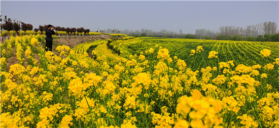 3月29日,商水縣鄧城鎮(zhèn)油菜花花開(kāi)正盛。商水縣鄧城鎮(zhèn)沿沙河種植4000多畝黃色、粉色等多色油菜花,為沙河沿岸風(fēng)光增加了色彩,吸引了不少附近縣市群眾賞花游玩,同時(shí)也帶動(dòng)了養(yǎng)蜂、榨油等相關(guān)產(chǎn)業(yè)。