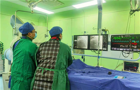 2021年3月初的一天,胸痛中心于上午9時20分接到急救電話,9時45分救護車到達現(xiàn)場實施院前急救,10時15分病人到達醫(yī)院,10時17分進入導管室,10時29分導絲通過閉塞段血管,10:39分支架置入成功,血流恢復正常。整個救治過程銜接緊湊有序,創(chuàng)造了D to W(從患者進入醫(yī)院大門到導絲通過閉塞的血管)用時僅14分鐘的新記錄。