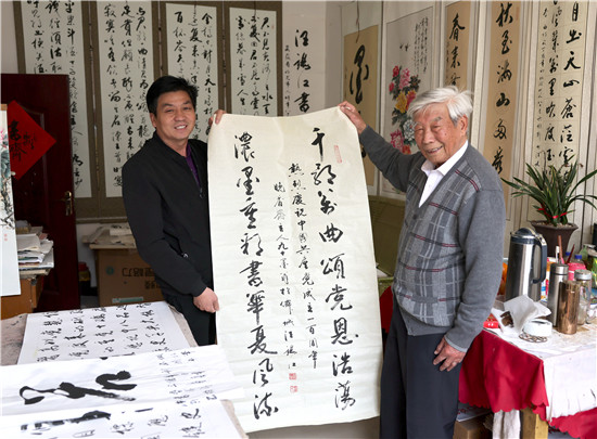 一直在學(xué)習(xí),不輟地練習(xí),這位中國書法之鄉(xiāng)的“老頑童”雖自稱“書法愛好者”,但大家欣賞完他的作品之后自有褒贊:“八旬老翁心不老,下筆如神妙字高。作品好似山流水,重賞如同琴醉嬌?!?/p>