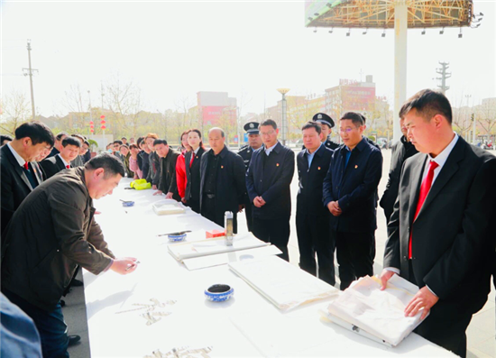為進(jìn)一步推進(jìn)全縣政法隊(duì)伍教育整頓工作走深走實(shí),激發(fā)政法隊(duì)伍的政治自覺、思想自覺、行動自覺,營造濃厚學(xué)習(xí)氛圍,3月30日上午,鄲城縣舉行“翰墨丹青頌黨恩,教育整頓治頑疾”書法展。該縣領(lǐng)導(dǎo)謝超、陳鳳祥、王巖,縣法院院長王洪彬、縣檢察院代檢察長陸智明參加活動。