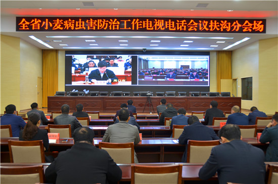 電視電話會(huì)議結(jié)束后,扶溝縣隨即召開會(huì)議,傳達(dá)會(huì)議精神,對(duì)小麥蟲害防控工作安排部署。