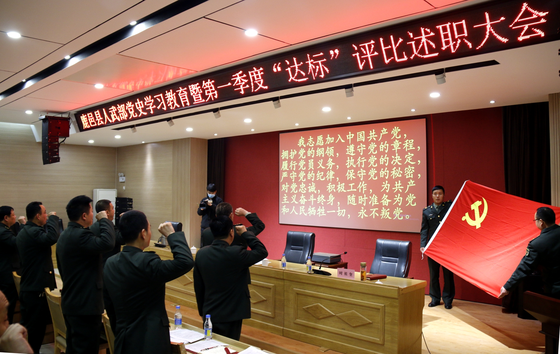 3月31日上午,鹿邑縣人武部召開黨史學(xué)習(xí)教育暨第一季度“達(dá)標(biāo)”評比述職大會??h人武部副部長時(shí)祖奎主持會議,部長范亞光、政委李峰出席會議??h人武部機(jī)關(guān)現(xiàn)役干部、文職人員、職工和鄉(xiāng)鎮(zhèn)、辦事處全體專武干部參加會議。