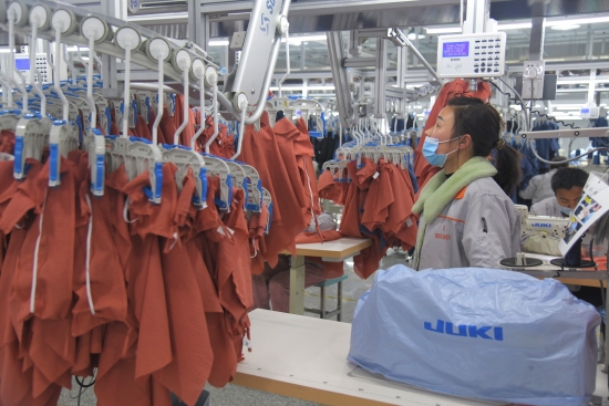該園區(qū)總投資48億多元,分三期建設(shè),集棉紡、面料、印染、成衣、進出口貿(mào)易等于一體,長期代工雅戈爾等國內(nèi)外頂尖品牌,全部建成后,每年可實現(xiàn)營業(yè)收入118億元,上交稅收約6億元,填補我市紡織服裝行業(yè)缺少高端品牌的空白。該園區(qū)2020年3月動工興建,10月可容納3000名員工的1號、2號服裝車間建成并投產(chǎn)運行,今年第一季度產(chǎn)銷兩旺,實現(xiàn)開門紅,預計全年可生產(chǎn)2000萬件高檔成衣;二期制衣項目、印染項目也將于今年陸續(xù)建成并投產(chǎn)。 周口日報·周道客戶端記者 付永奇攝③2