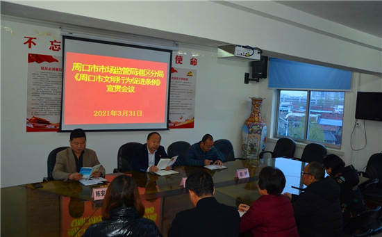 3月31日,周口市市場監(jiān)督管理局港區(qū)分局召開《周口市文明行為促進(jìn)條例》宣貫會議。局長崔健就如何學(xué)習(xí)、遵守、貫徹、宣傳好《周口市文明行為促進(jìn)條例》向全局同志提出具體要求。