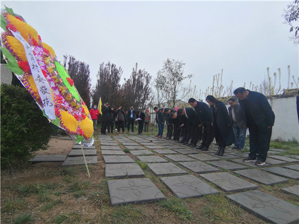 綠樹掩映,豫東特委紀(jì)念塔高高佇立,紀(jì)念碑前整齊地擺放著鮮花。300余名來自老區(qū)的黨員干部、師生代表等在烈士胡曉初墓前靜立默哀、三鞠躬,傾訴哀思,深切緬懷革命先烈的不朽功績。