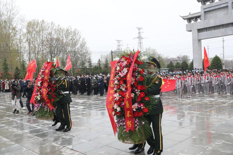 4月2日上午,太康縣烈士陵園內(nèi)莊嚴(yán)肅穆,1000多名基層干部群眾和青少年,在烈士紀(jì)念碑前列隊站立。祭掃開始后,全場奏唱《中華人民共和國國歌》。在全體人員向烈士默哀寄托哀思之情后,300名少先隊員齊唱《我們是共產(chǎn)主義接班人》,向先烈表達傳承革命先烈精神,和不懈奮斗的信心和決心。隨后,在《獻花曲》激昂深情的旋律中,6名禮兵抬起由太康縣委、太康縣政府、太康縣人大、太康縣政協(xié)以及社會各界敬獻的花籃緩步前進,將花籃一字排列放在紀(jì)念碑基座前。