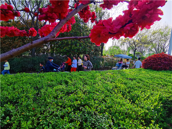 最美四月天,踏青正當時。清明節(jié)期間,周口公園、植物園里金黃的連翹、婀娜多姿的美人梅、鵝黃嫩綠的新柳、盛開的桃花……一片生機盎然、春意融融的景象,市民紛紛來到戶外,沐浴春光,擁抱大自然,悠閑享受假日時光。②9