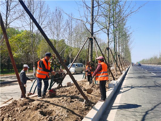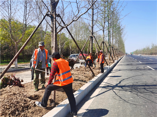 日前,氣溫回暖,春光明媚,正是種植樹木、養(yǎng)護苗木的好時節(jié)。連日來,在周口大道北段,園林工人利用現在好時節(jié),忙于栽植各種樹木,建設綠化工程。