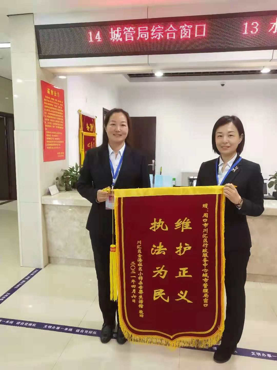 4月6日,周口市行政服務中心川匯區(qū)城市管理局服務窗口,張先生激動地將一面錦旗交到工作人員手中,感謝川匯區(qū)城市管理局在門頭牌匾審批過程中給予的熱情幫助和指導。