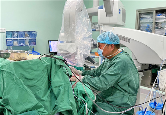 2008年,劉衛(wèi)華開始向神經外科顯微技術進攻。這一年,他先在北京舉辦的顯微技術培訓班學習一個月,之后又在北京大醫(yī)院進修半年多。那段時間,他幾乎整天泡在實驗室里,用小白鼠、免子等進行顯微技術操作練習。進修歸來后,在該院領導的支持下,醫(yī)院引進一臺神經外科專用顯微鏡。借助這臺顯微鏡,劉衛(wèi)華初顯身手,相繼開展了顯微鏡下星型細胞瘤切除術、第一例腦膜瘤切除術、第一例腦轉移瘤切除術、第一例椎管內脊髓腫瘤切除術。