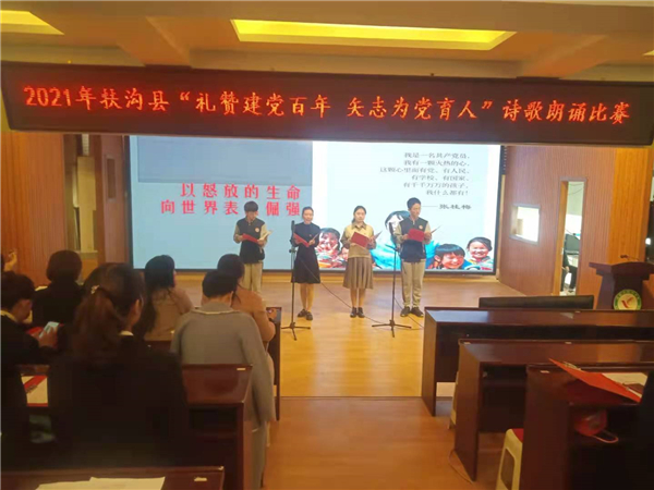 為深入學(xué)習(xí)貫徹習(xí)近平總書(shū)記關(guān)于教育的重要論述和全國(guó)、全省教育大會(huì)精神,加強(qiáng)和改進(jìn)新時(shí)代師德師風(fēng)建設(shè),以高質(zhì)量的師德建設(shè)水平向建黨百年獻(xiàn)禮,4月9日上午,扶溝縣教體局在新村小學(xué)舉辦了全縣教體系統(tǒng)“禮贊建黨百年,矢志為黨育人”詩(shī)歌朗誦比賽。
