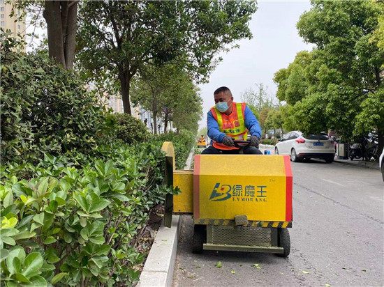 4月13日,周口大道上園林工人操作著特殊的園林作業(yè)車(chē),修剪路邊的綠化樹(shù),使用“電推子”,不僅提高了效率、節(jié)省了人力,就連“剃”出來(lái)的“平頭”也更平了。“電推子”所到之處,綠化樹(shù)被修剪得很齊整。②9