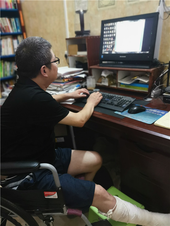 命運(yùn)似乎在捉弄他。王洪振頸椎剛有好轉(zhuǎn),2020年6月,在一次送材料的路上,他不慎造成小腿骨折,被迫住院治療。“根據(jù)醫(yī)生安排,我必須回家休養(yǎng)??墒俏野l(fā)現(xiàn)拄著雙拐能動(dòng),而且我的雙手沒有問題,完全不影響電腦打字?!蓖鹾檎裾f。