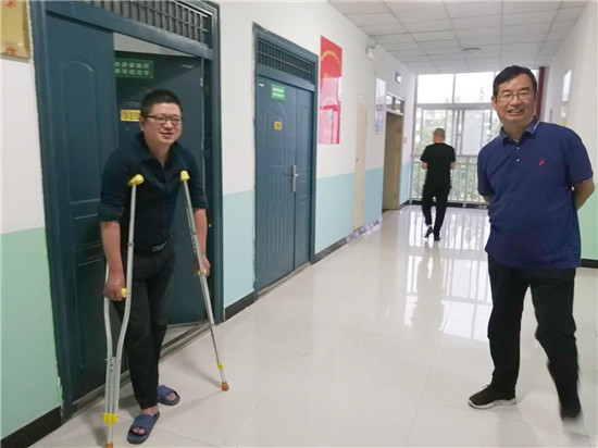 就這樣,手術(shù)后,他就堅(jiān)持拄拐上班。騎車不方便,就讓70多歲的老父親每天接送。局機(jī)關(guān)人員看著王洪振這么拼,深受感動(dòng),紛紛稱贊他是最美“敬業(yè)哥”。