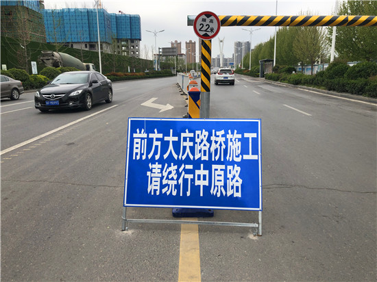 在大慶路橋南、北兩個上橋口,已安裝了高為2.2米的限高桿,施工路段的東側(cè)修有4個車道的便道,各車道中間設(shè)有臨時護(hù)欄,低于2.2米的車輛可以通行。值得提醒的是,該路段早、晚高峰期時較為擁堵,希望市民提前繞行(可繞行至中原路、八一大道)。