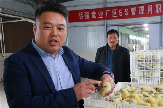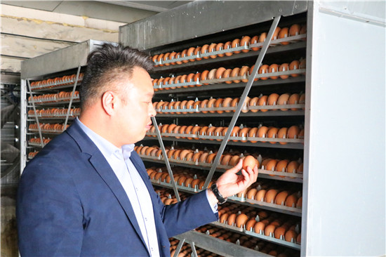 2017年,有著多年禽業(yè)市場經(jīng)驗(yàn)的朱明明開始想獨(dú)立創(chuàng)業(yè),經(jīng)朋友介紹與玉皇村黨支部書記張振冬相識(shí),一邊是想找個(gè)合適的地方投資,一邊是正為招商引資的事發(fā)愁,倆人一拍即合。朱明明拿出所有積蓄800多萬元,在玉皇村投資建設(shè)了河南明強(qiáng)禽業(yè)有限公司?!霸摴局饕獜氖路N雞、肉雞養(yǎng)殖,雞苗孵化、銷售。”朱明明介紹,目前,該公司有員工90多人,全部是附近村莊的村民,他們大多因?yàn)槟挲g偏大或者在家?guī)Ш⒆訜o法外出務(wù)工。該公司租用村民的土地,再為村民提供就業(yè)崗位,把種地的雙手解放出來,工作輕松點(diǎn),還能多賺點(diǎn)錢,也不耽誤照顧孩子與老人。因地制宜發(fā)展扶貧產(chǎn)業(yè),推動(dòng)貧困群眾增收是該企業(yè)的初衷。