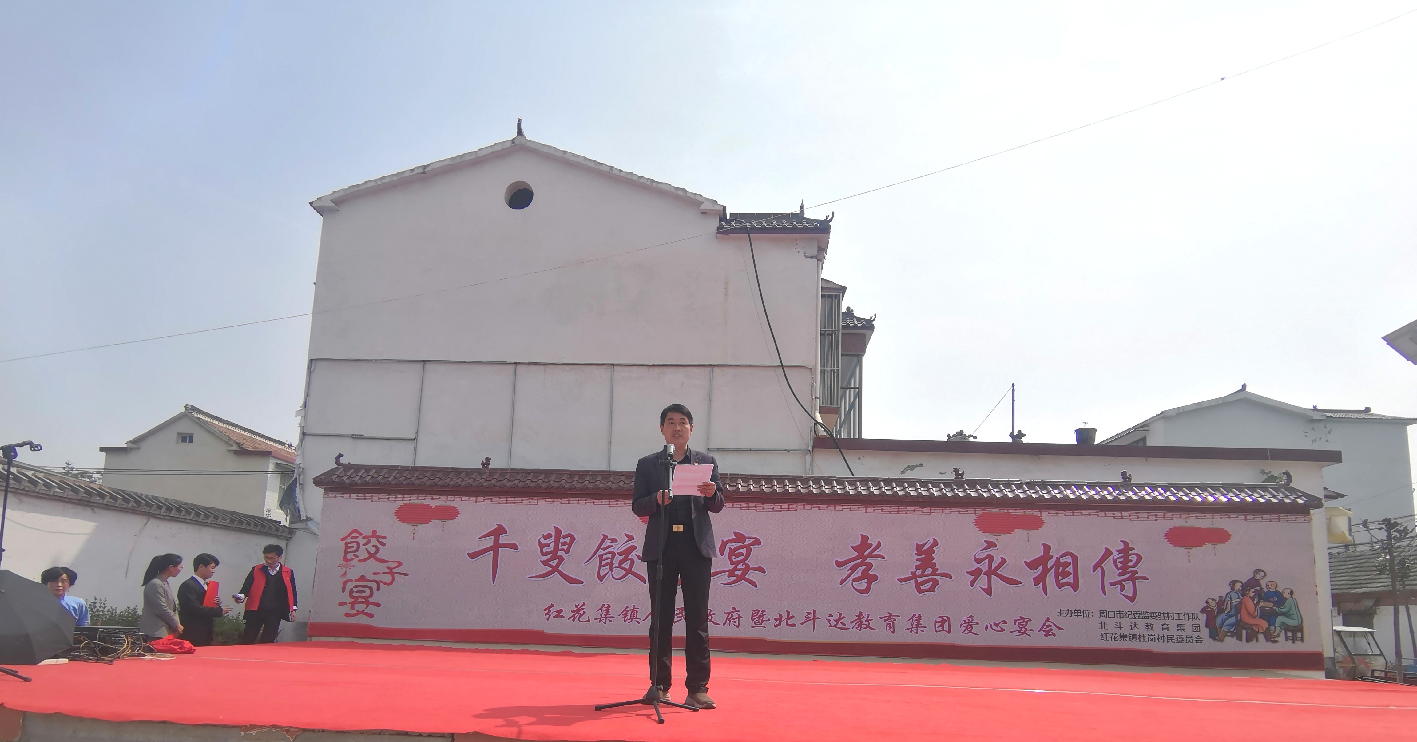 為弘揚(yáng)孝善敬老優(yōu)良傳統(tǒng),營造人人尊老、敬老、愛老、助老的良好氛圍,4月14日上午,西華縣紅花集鎮(zhèn)杜崗村與信陽息縣彎柳樹村舉行支部聯(lián)建簽約儀式。借此機(jī)遇,北斗達(dá)教育集團(tuán)向兩村黨支部聯(lián)建工作捐贈10萬元啟動資金。同時,北斗達(dá)教育集團(tuán)還聯(lián)合市紀(jì)委監(jiān)委駐杜崗村工作隊舉行“千叟餃子宴,孝善永相傳”活動,近千名老人團(tuán)聚一堂,品嘗愛心餃子,欣賞孝道文藝節(jié)目,共享幸福美好生活。