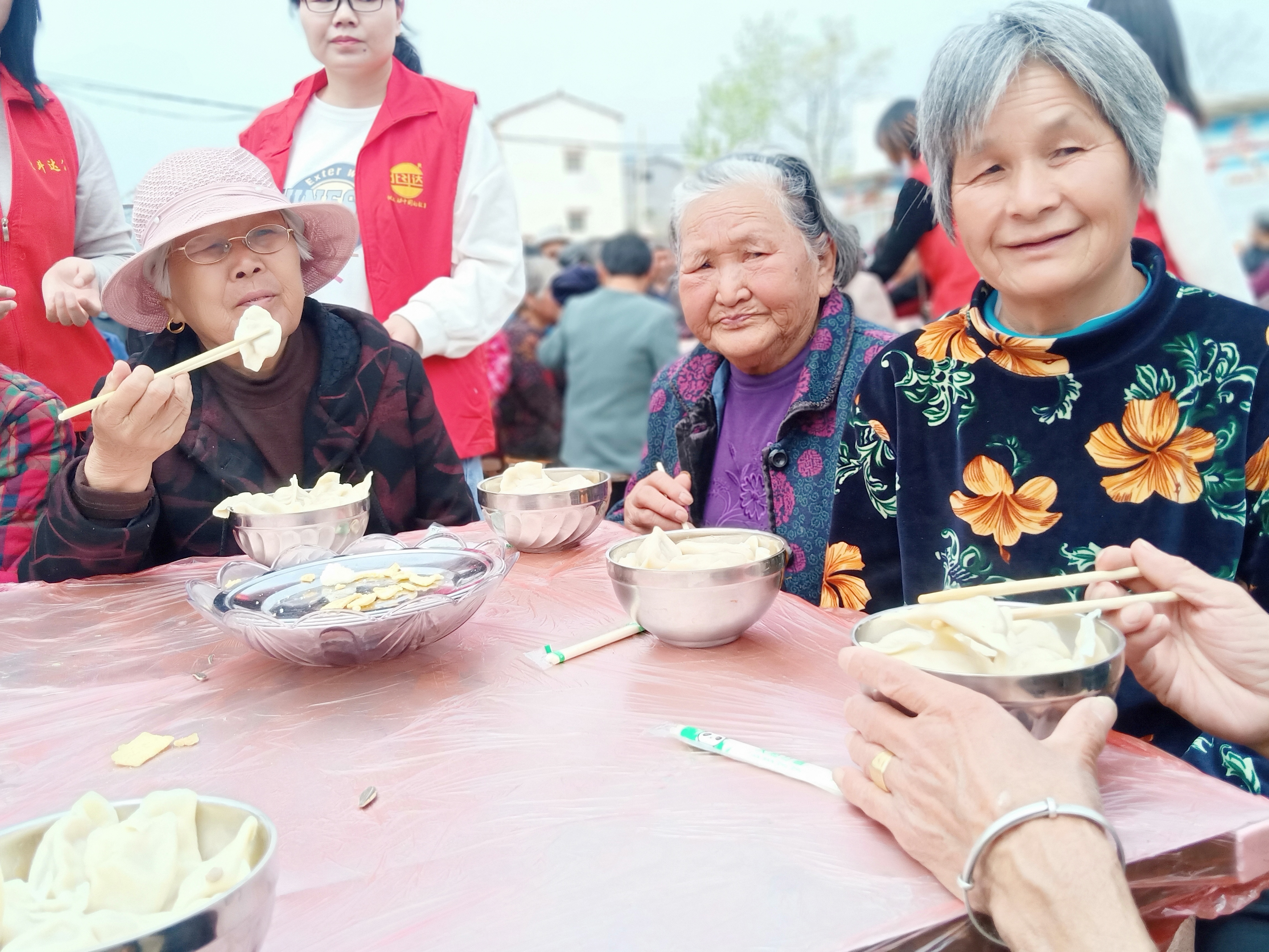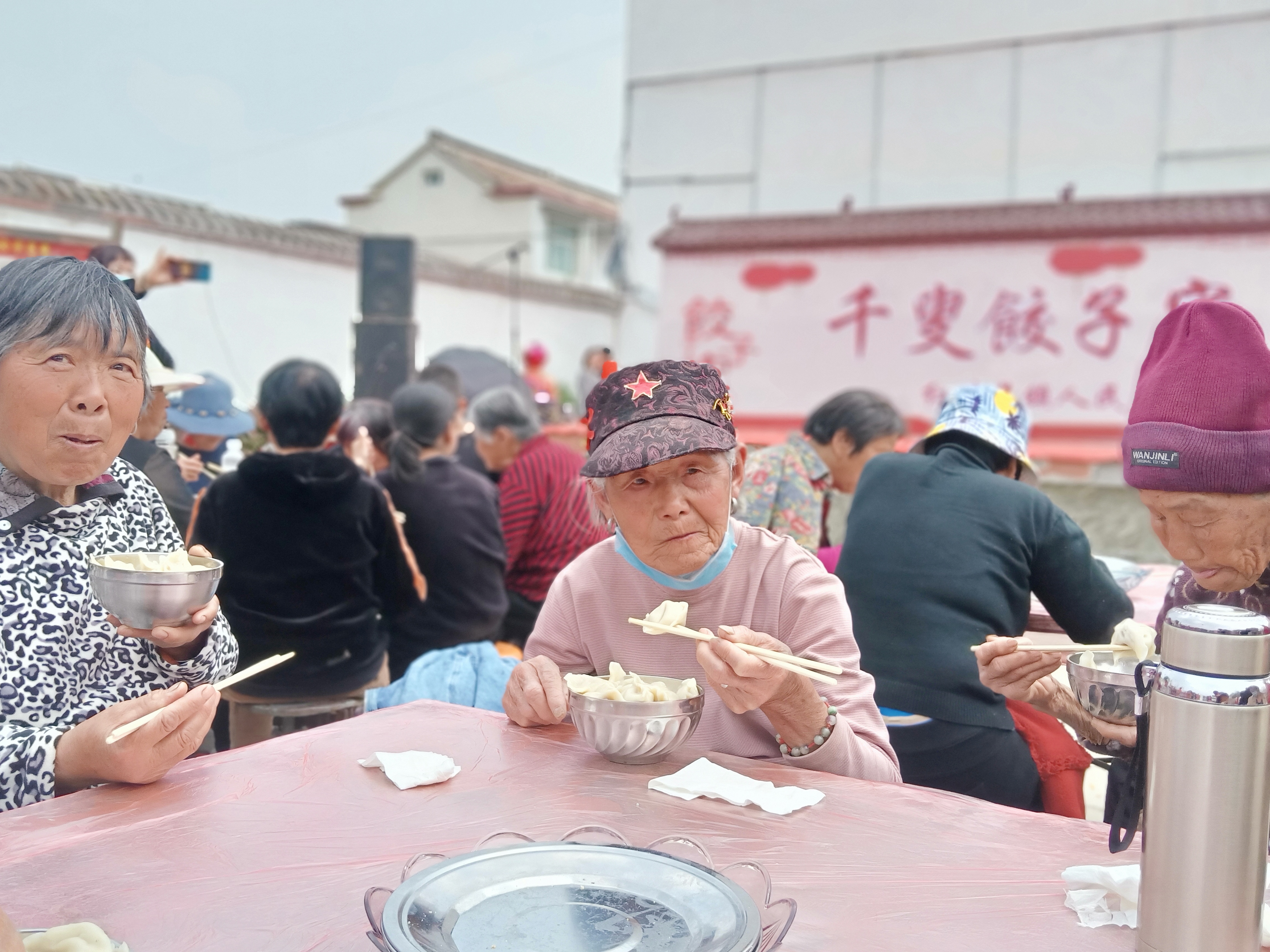 一個多小時過去了,他們精心包出了一個個包含濃厚情誼的愛心水餃。11時30分,餃子宴正式開始,老人們一邊吃著水餃一邊觀看者演出,喜笑顏開,呈現(xiàn)出一片相親相敬的溫馨畫面。