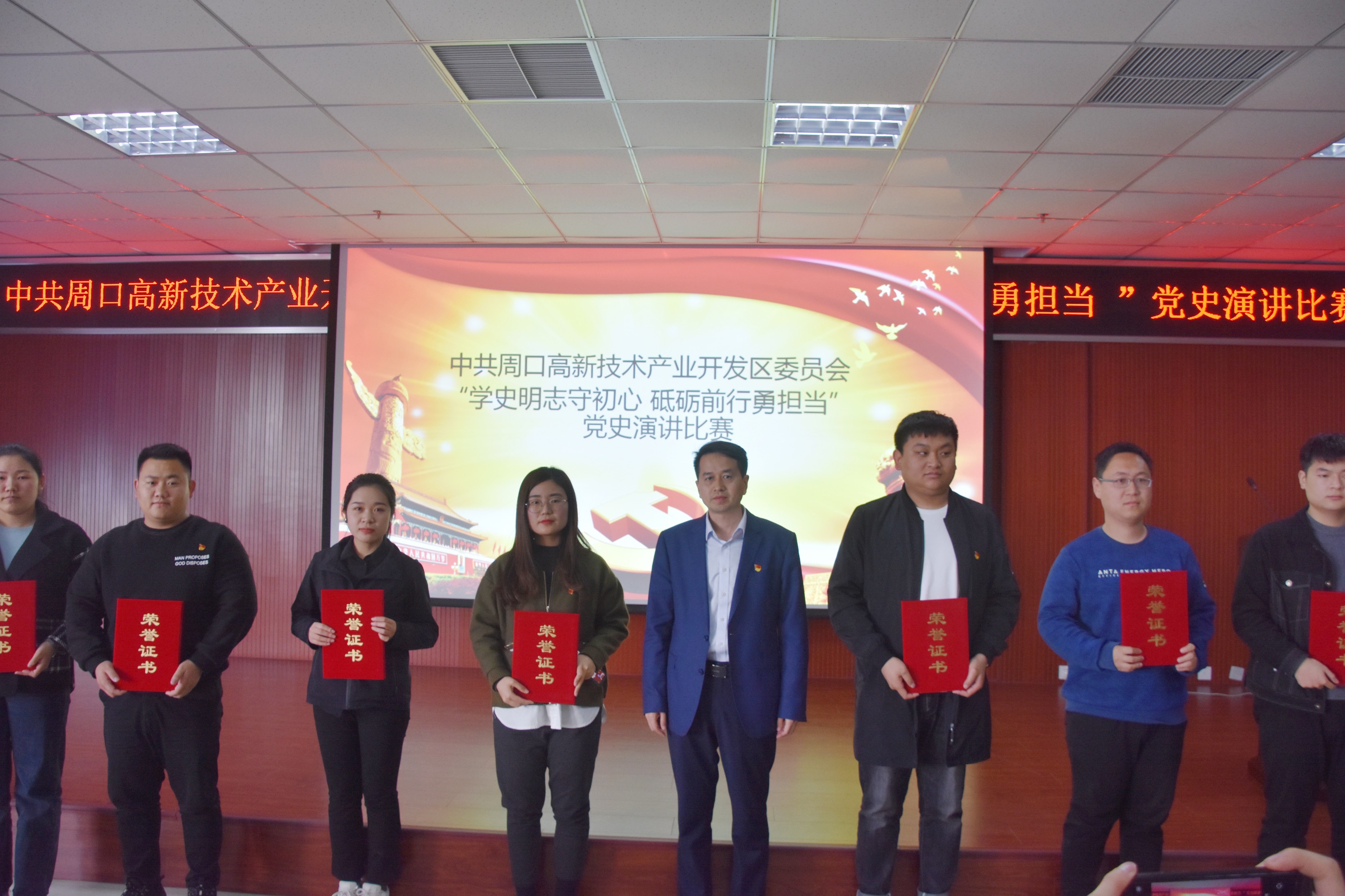 來自宏源支部、榮獲一等獎(jiǎng)的楊智超頗有感觸地說:“英雄的偉大事跡,穿越時(shí)空閃耀著燦爛光芒,100年前革命英烈用錚錚鐵骨捍衛(wèi)的偉大山河,在新時(shí)代,應(yīng)由我們一代又一代青年用奮斗的一生接力守護(hù)?!薄霸谌珖舷麻_展黨史學(xué)習(xí)教育之際,周口高新區(qū)黨委舉辦演講比賽,能激勵(lì)廣大黨員干部重溫革命先輩奮斗歷程,賡續(xù)共產(chǎn)黨人精神血脈?!敝芸诟咝聟^(qū)管委會(huì)副主任陳學(xué)磊說。