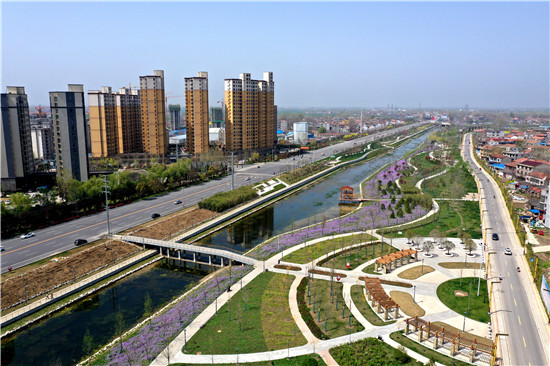 2018年以來,鄲城縣斥資28億元,治理洺河、勞武河、五里河、楊白溝、調(diào)水渠“三河一溝一渠”長約48千米的黑臭水體,打造洺河生態(tài)水系成為3A級風景區(qū),黑臭水體變成水草豐美、魚翔淺底的生態(tài)長廊,把最大的民生工程、 民心工程鐫刻在群眾心坎上。如今春風送暖,萬物復蘇,洺河生態(tài)水系主體工程基本完工迎來第一個春天,全線風景如詩如畫。②18