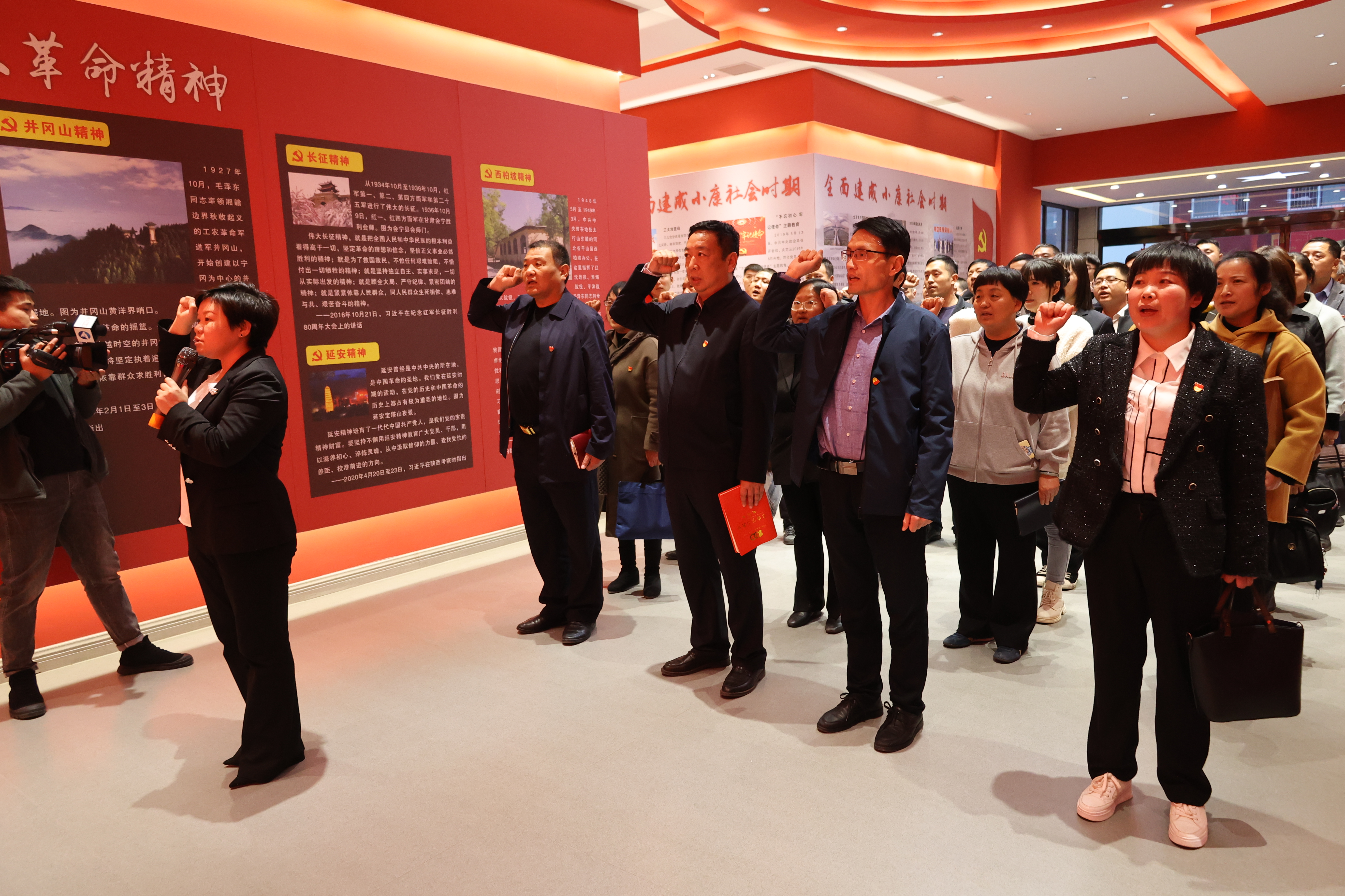 收聽收看黨史夜校前,政法單位黨員干部現(xiàn)場參觀了縣黨員教育中心,黨史館、黨建書吧、黨員沙龍、談心室、信息室、黨課錄播室等,聽取了黨員志愿者的詳細(xì)講解并在大廳重溫了入黨誓詞。