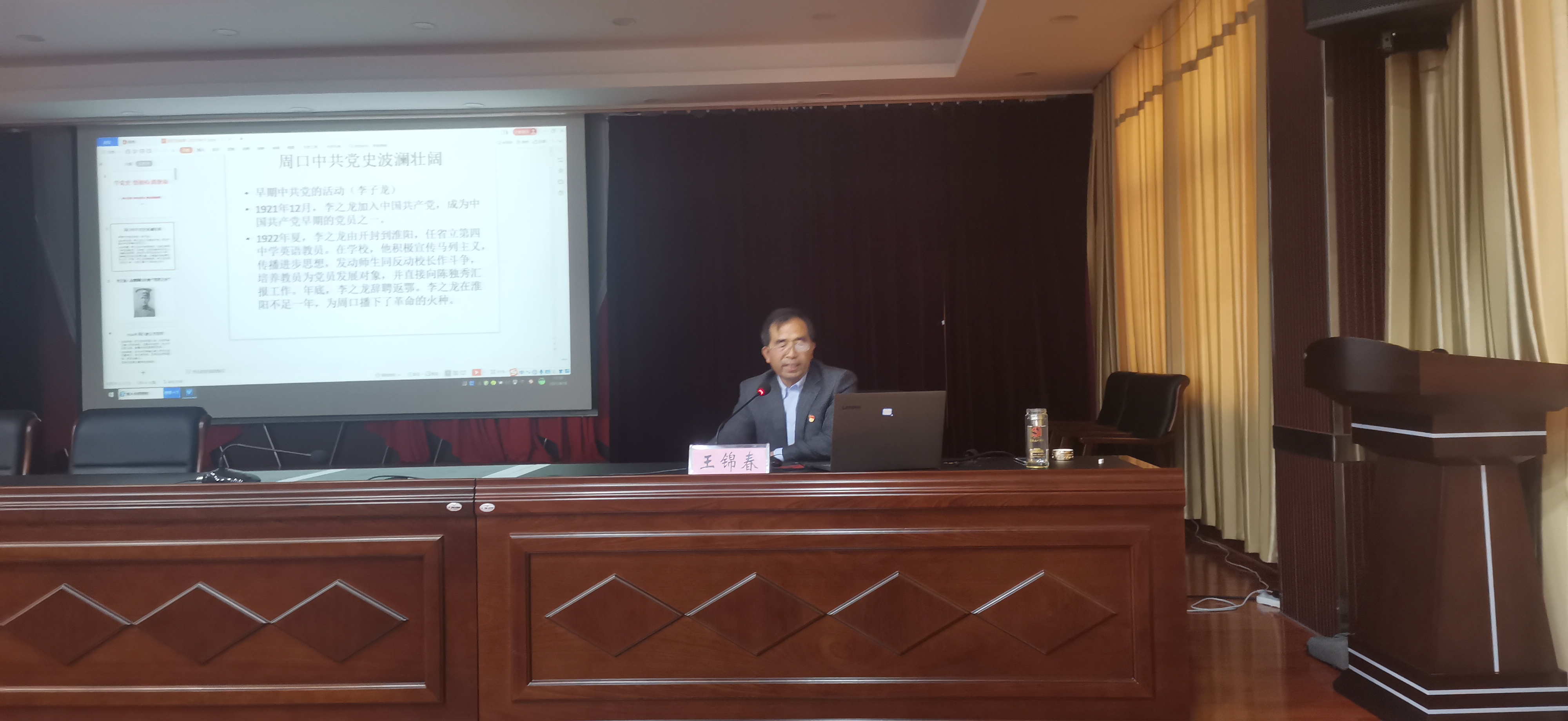 報告會上,王錦春結(jié)合周口黨史資料和采訪的內(nèi)容,講述了發(fā)生在周口大地上的紅色故事和戰(zhàn)斗傳奇。在這些傳奇故事中,既有早期周口革命火種的傳播者,也有浴血奮戰(zhàn)的抗日民族英雄,既有奮勇殺敵不怕犧牲的優(yōu)秀共產(chǎn)黨員,也有全力參與解放戰(zhàn)爭的支前平民英雄等,使與會人員對中國共產(chǎn)黨在革命過程中作出的巨大犧牲、展現(xiàn)的巨大勇氣、彰顯的巨大力量有了更加深刻的感悟和了解。