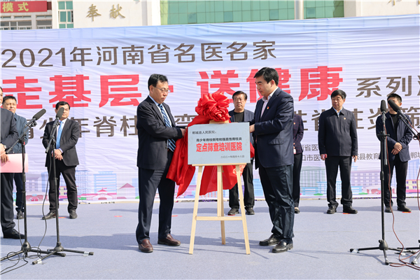 4月18日,2021年河南省名醫(yī)名家“走基層?送健康”系列活動——走進(jìn)鄲城暨在校青少年脊柱側(cè)彎和強直性脊柱炎篩查義診?志愿者服務(wù)行動在鄲城縣第二實驗中學(xué)啟動。