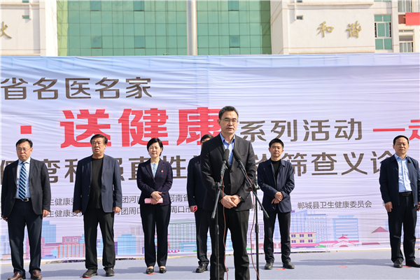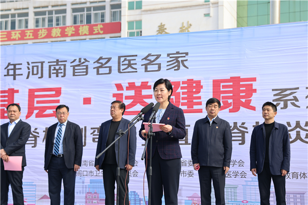 羅文閣致歡迎詞。她說,只有全民健康才有全面小康。今天,河南省在校青少年脊柱側(cè)彎和強直性脊柱炎篩查義診活動走進(jìn)鄲城,對鄲城孩子們的健康成長是件好事、實事,我們將全力以赴,做好配合,爭取讓項目惠及更多患者,同時希望全縣廣大醫(yī)護工作者以這次活動為契機,珍惜難得的學(xué)習(xí)機會,從名醫(yī)名家身上,學(xué)習(xí)出類拔萃的醫(yī)療技術(shù)、德藝雙馨的大醫(yī)情懷、心系群眾的高尚情操、不辭勞苦的敬業(yè)精神,不忘初心、牢記使命,勤學(xué)苦練、提升本領(lǐng),為鄲城創(chuàng)建國家健康縣城、做好鞏固拓展脫貧攻堅成果同鄉(xiāng)村振興有效銜接作出更大貢獻(xiàn)。