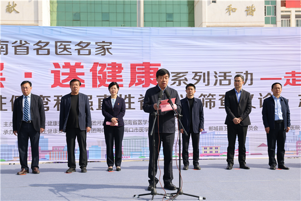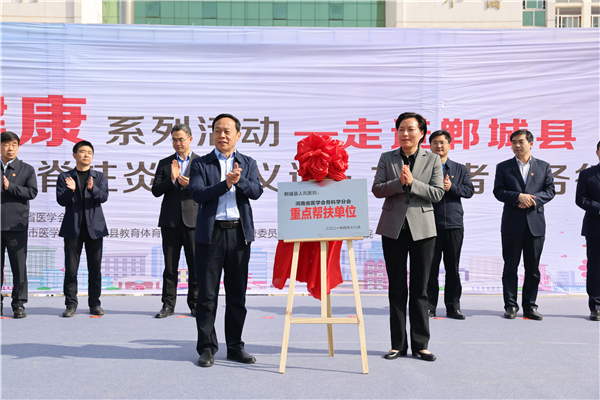 河南省衛(wèi)健委副主任劉延軍,光明日報社河南站站長王勝昔,省衛(wèi)健委宣傳處處長楊力勇,省醫(yī)學(xué)會副會長兼秘書長王偉,省人民醫(yī)院副院長張連仲,團河南省委學(xué)校部副部長張艷斌,省骨科學(xué)會主任委員、省人民醫(yī)院脊柱脊髓外科主任高延征,周口市人大常委會副主任、鄲城縣委書記羅文閣,周口市副市長秦勝軍,市衛(wèi)健委主任金玉貞,鄲城縣副縣長張凱,縣衛(wèi)健委主任付登霄,縣人民醫(yī)院院長于健,縣教體局局長羅明黨等出席啟動儀式。儀式由鄲城縣人民政府縣長李全林主持。