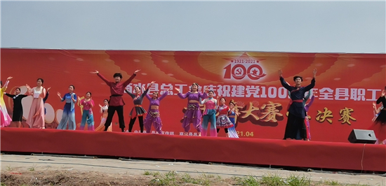 為隆重慶祝建黨100周年和喜迎五一國際勞動節(jié),近日,由中共商水縣委宣傳部、商水縣總工會主辦的商水縣慶祝建黨100周年全縣職工廣場舞大賽總決賽在沙潁河南岸鄧城張灣舉行。縣委常委、宣傳部部長李本磊,縣委常委、縣政府副縣長崔巖,縣政協(xié)副主席彭發(fā)光,縣總工會主席盧紅兵和縣總工會班子領導以及各基層工會主席和廣大干部職工群眾8000多人到現(xiàn)場觀看比賽。