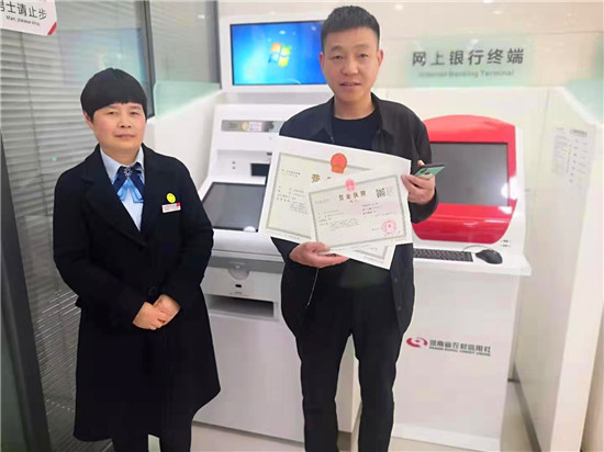 當(dāng)日,邵先生在鄲城財(cái)政局樓下鄲城信用聯(lián)社大廳商事登記綜合業(yè)務(wù)自助一體機(jī)上插入身份證,機(jī)器面部自動(dòng)識(shí)別后,隨著一體機(jī)的一聲“請(qǐng)即時(shí)取走您的營(yíng)業(yè)執(zhí)照”提示,營(yíng)業(yè)執(zhí)照正副本當(dāng)即打印出來了。