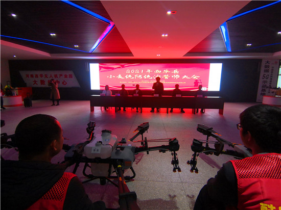 4月21日上午,西華縣在無人機(jī)產(chǎn)業(yè)園召開小麥統(tǒng)防統(tǒng)治誓師大會(huì)。無人機(jī)產(chǎn)業(yè)園各植保公司無人機(jī)飛手、科技人員百余人集體宣誓:為人民服務(wù),積極做好西華縣小麥一噴三防工作,保質(zhì)保量按時(shí)完成飛防任務(wù)。