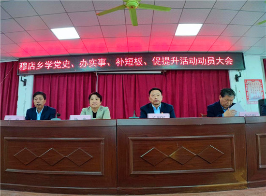 4月20日上午,鹿邑縣“學(xué)黨史、辦實(shí)事、補(bǔ)短板、促提升”活動(dòng)第一指導(dǎo)組組長(zhǎng)、縣委常委、副書記許四軍,副組長(zhǎng),縣政府副縣長(zhǎng)楊彩、縣政協(xié)副主席李蘭明、縣文廣旅局黨組書記張峰一行9人到穆店鄉(xiāng)參加、指導(dǎo)穆店鄉(xiāng)“學(xué)黨史、辦實(shí)事、補(bǔ)短板、促提升”活動(dòng)動(dòng)員大會(huì)。