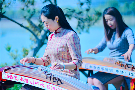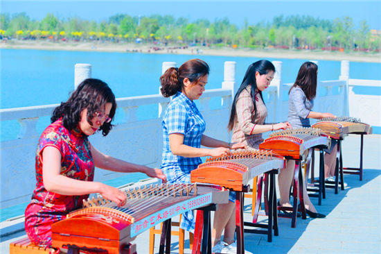 4月22日,鄲城人民公園碧水晴空,一群身著旗袍的女性在這里用古箏演繹著唯美曼妙的曲調(diào)。