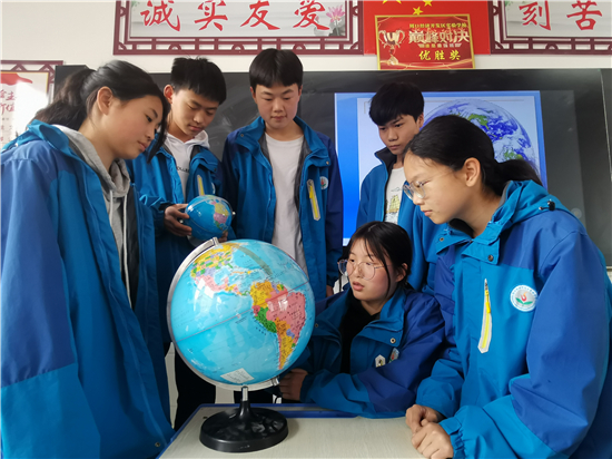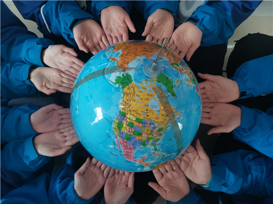 該校學(xué)生利用地球儀認(rèn)識(shí)地球、了解地球構(gòu)造。