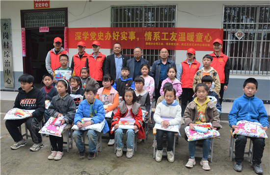 “經(jīng)過我們公司老員工、村支部書記李金棋的牽線聯(lián)系,俺一行6人今天一大早驅(qū)車近200公里到這里開展‘深學(xué)黨史辦好實(shí)事、情系工友溫暖童心’活動。一方面是學(xué)黨史辦實(shí)事的需要,也是關(guān)愛農(nóng)民工支持地方教育事業(yè)的需要......”中建七局下屬公司在商丘市一個項(xiàng)目生產(chǎn)部的負(fù)責(zé)人黃彥光如是說。